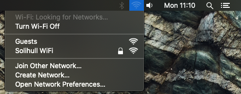 The Wi-Fi icon next to Solihull WiFi will change to solid blue when connected.