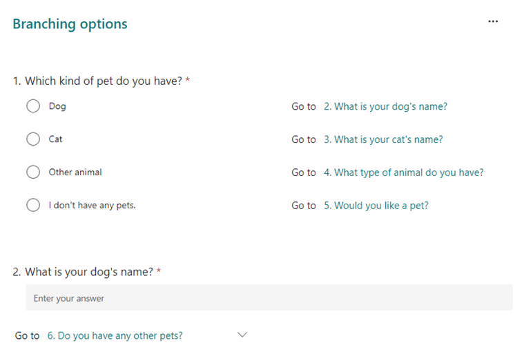 e.g. After ‘Dog’ Go to ‘What is your dog’s name?