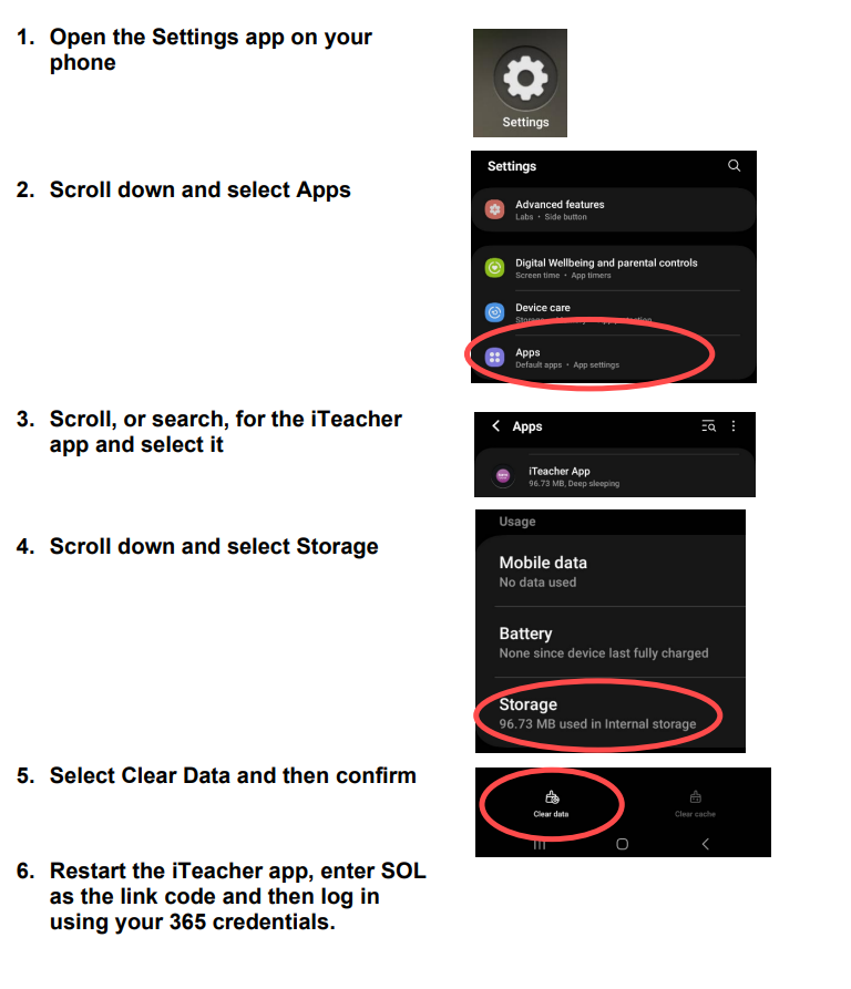 Resetting the iTeacher app on Android