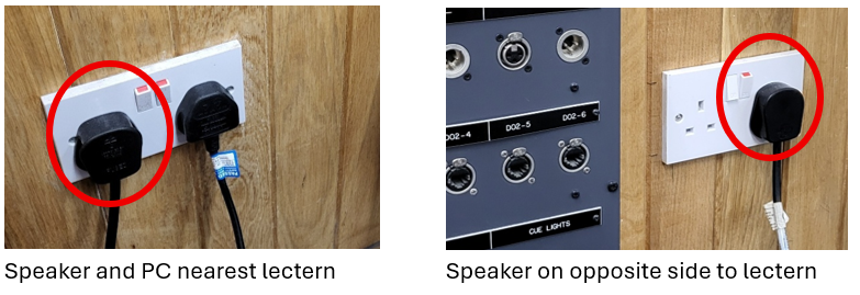 The two speakers either side of the stage connect to the Lectern PC via Bluetooth. Please ensure that you have followed the below steps.