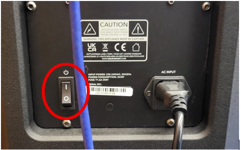 Please note: if you had to power the socket on in step one, you would also need to power on the PC on the shelf below the screen.